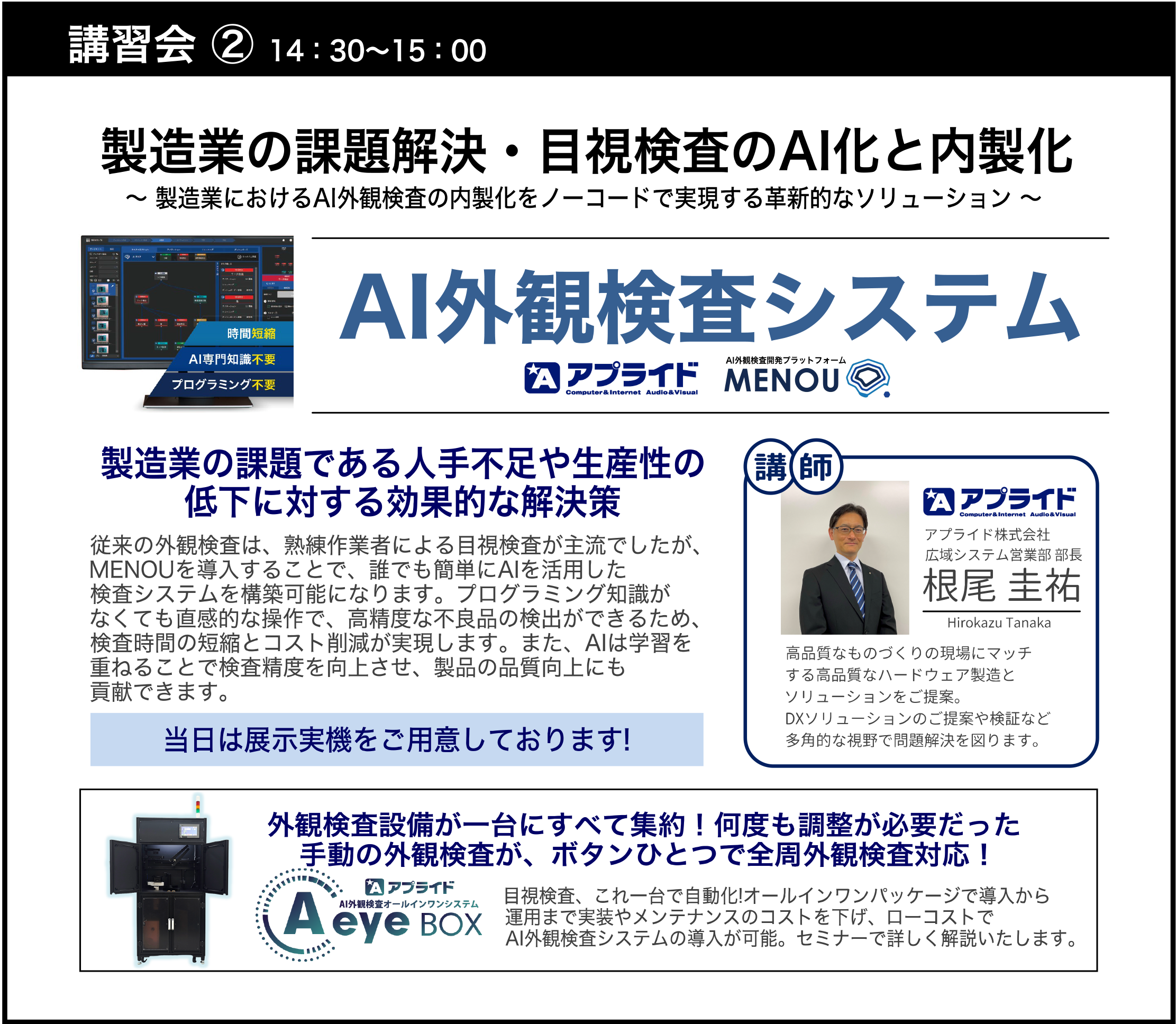 | 主催 | アプライド株式会社 広域システム営業部/ 特機営業部/ SI営業部 |