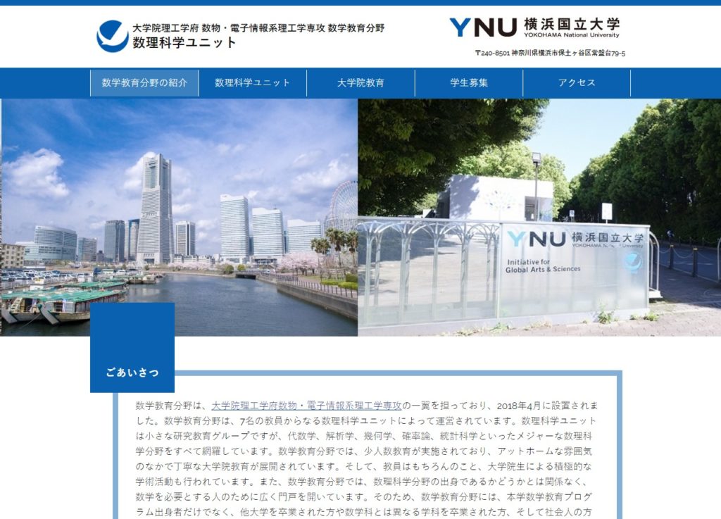 横浜国立大学 大学院理工学府 数物・電子情報系理工学専攻 数学教育分野(数理科学ユニット) 様