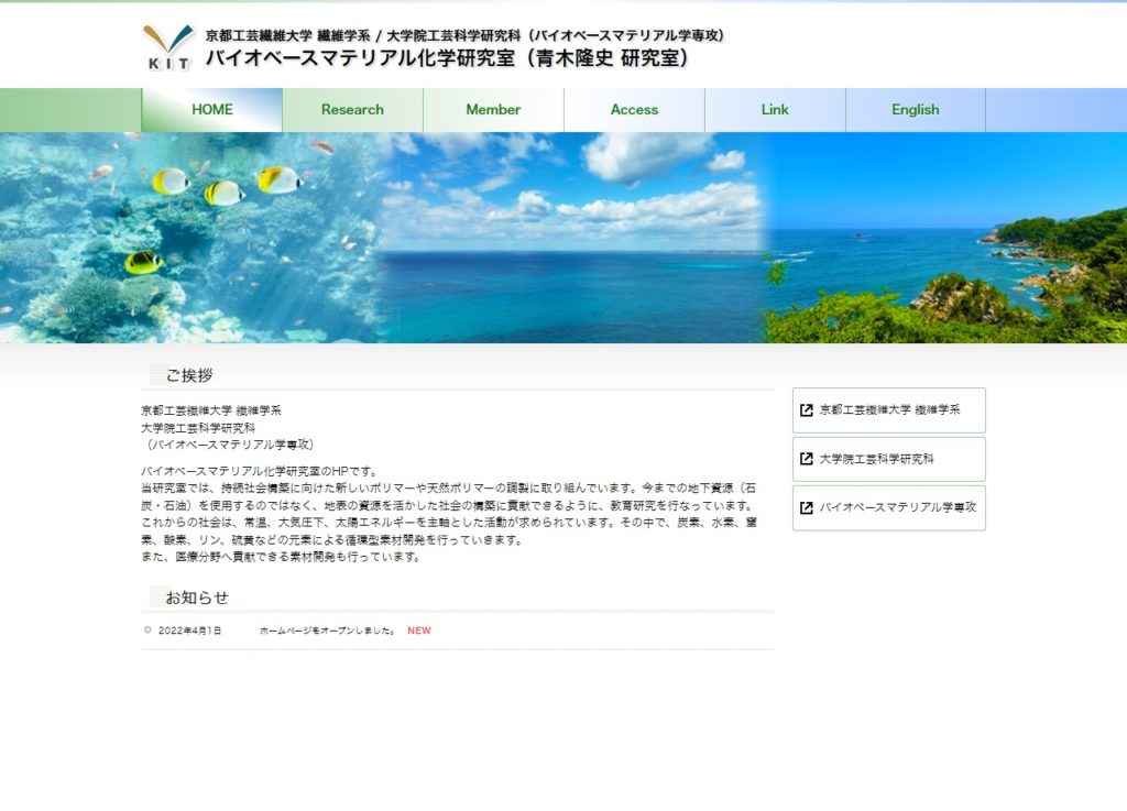 京都工芸繊維大学 バイオベースマテリアル化学研究室(青木隆史 研究室) 様