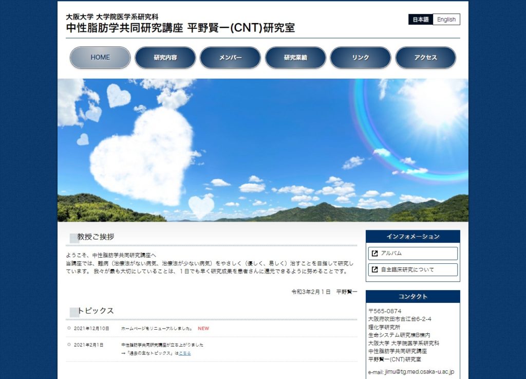 大阪大学 大学院医学系研究科 中性脂肪学共同研究講座 平野賢一(CNT)研究室 様