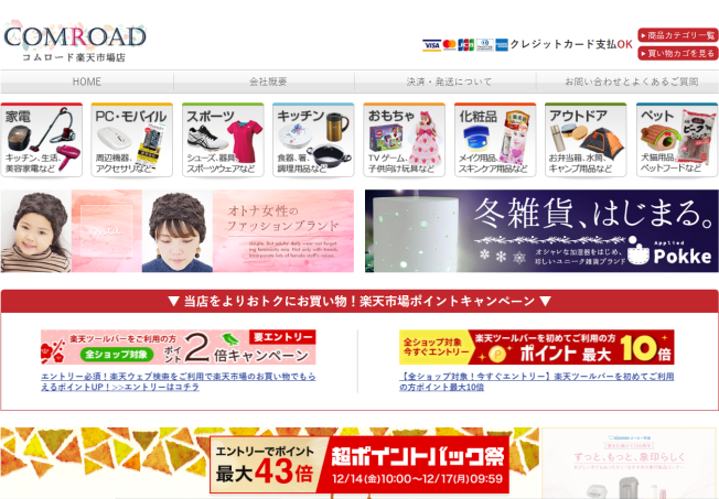 コムロードオンラインは家電にとどまらず、スポーツ、日用品、食品、インテリア等の多品目を取り扱う総合通販サイトへと拡大中です。
