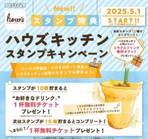 【イベント/店舗】ハウズキッチン スタンプキャンペーンまだまだ実施中★期間中にスタンプをためて、お好きなドリンク1杯無料♪この機会にぜひハウズキッチンご利用ください♪